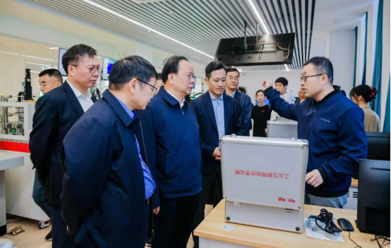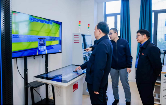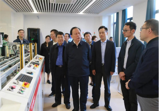 调研期间,周农一行走进我院工业互联网综合实验室,重点考察了数智化示范性生产线。院长满君丰对工业互联网综合实验室进行了详细介绍,该实验室旨在探索具备学校特色、湖南产业特色的智能制造工程应用实践教学体系,建立智能制造工程校企协同育人新高地。工业互联网综合实验室作为支持线下实践、线上分享交流的工业互联网平台工程应用实验环境,汇聚了工业互联网平台架构设计、解决方案与应用开发、平台部署和运维等方面的教学资源、案例等,实现校企对接互联。