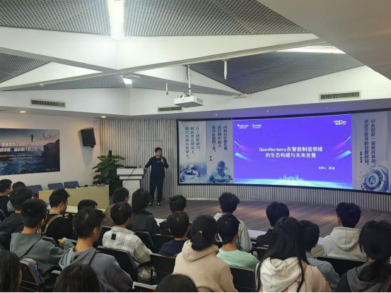 拓维信息的工程师为润之卓越班同学做了题为“0penHarmony在智能制造领域的生态构建与未来发展”的专题讲座,并就鸿蒙生态圈、发展态势、鸿蒙与国产自主可控工业软件关系、未来就业前景等问题进行了沟通交流,解答同学们的疑问,为工业智能润之卓越班的同学上了职业与专业教育的重要一课。