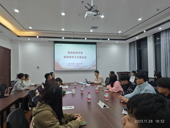为广泛听取我院师生对课堂教学、实习实训及教育教学相关工作意见,了解学生的学习情况,促进教风学风建设,提高教学质量。学院于11月28日在百熙楼214会议室召开了本学期教育教学工作座谈会与集中反馈会。院长满君丰、院党委副书记陈阳、副院长蔡颂、副院长白斌、工业智能系系主任马俊杰、院督导、教科办主任李彩琴、各班班主任及学生代表参会。会议由副院长白斌主持。