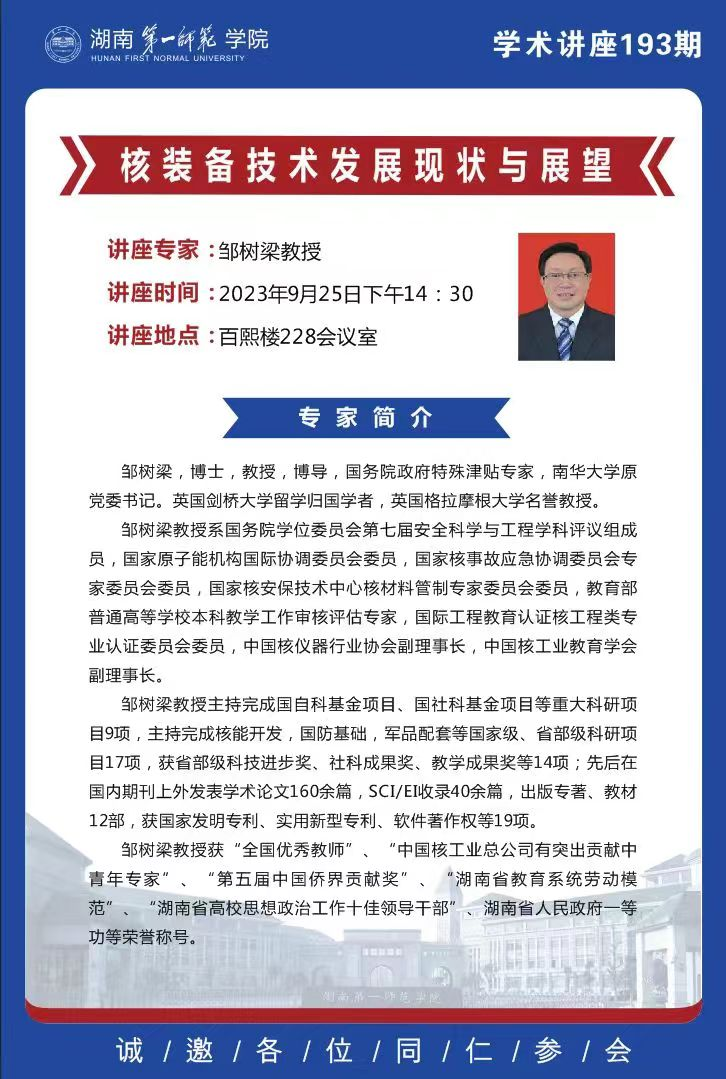讲座专家:邹树梁教授