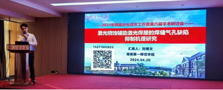 在“高能束及特种焊接” 分会场,刘博文作了题为《激光烧蚀辅助激光焊接的焊缝缺陷抑制机理研究》的主题报告,阐述了轻质高强钛合金气孔缺陷成为制约其应用推广的瓶颈难题,强调了调控熔池流动与传热过程是抑制气孔缺陷的基础,提出了基于激光烧蚀辅助激光焊接的焊接缺陷抑制机理与方法,为焊接技术的发展提供了新思路。