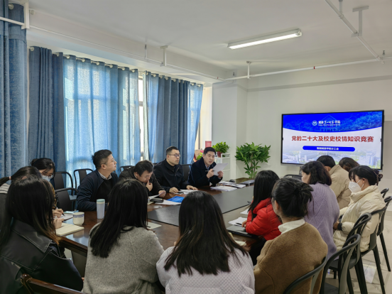 为深入学习宣传贯彻党的二十大精神,全面落实中国工会十八大会议部署,坚持用习近平新时代中国特色社会主义思想凝心铸魂。12月6日下午,我院分工会在百熙楼911会议室开展了党的二十大及校史校情知识竞赛,活动由学院党委副书记、分工会主席陈阳主持,全体教职工参加。