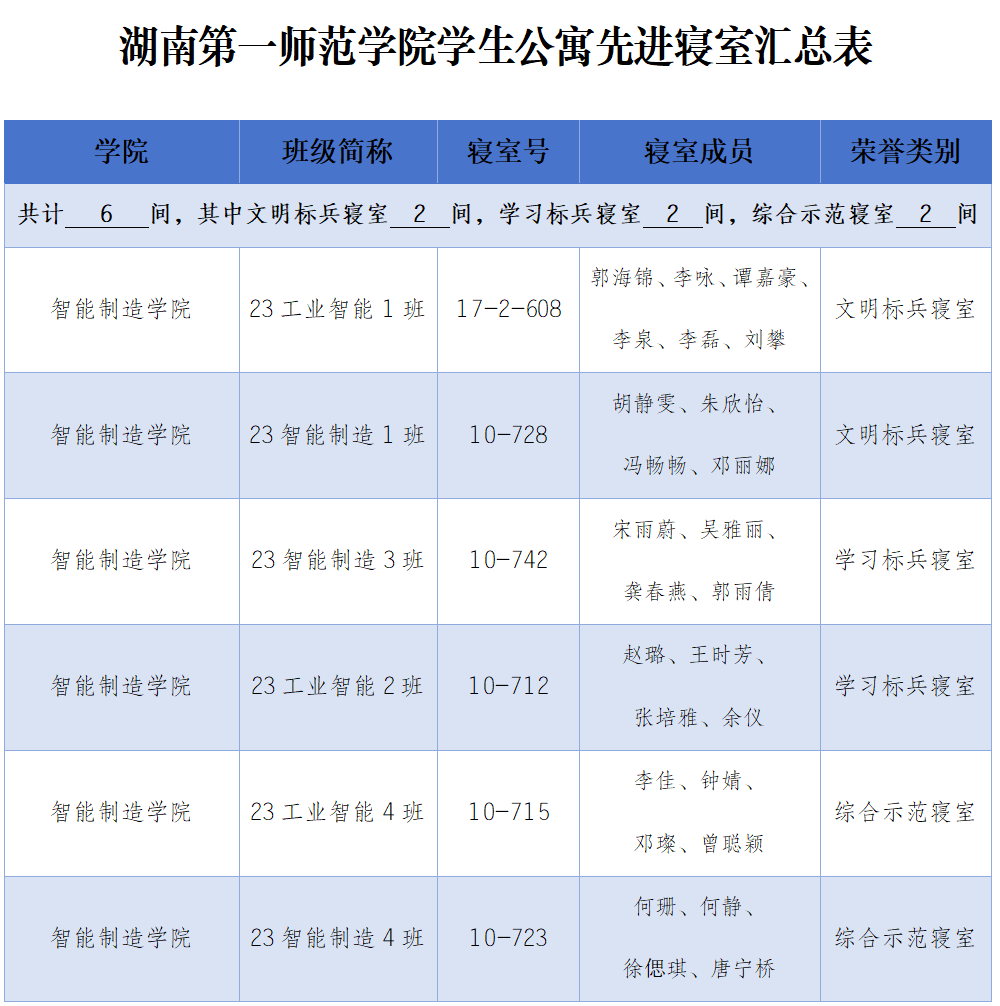 为深入学习贯彻党的二十大精神、学校第二次党代会精神,全力建设“四个一师”,切实提高学校服务育人水平,营造催人奋进的公寓文化氛围,依据《伟德bv1946“六进公寓”实施办法》及《伟德bv1946学生公寓管理条例》《伟德bv1946学生文明寝室建设“七条”规定》等文件规定,按照“文明整洁、学风优良、和谐互助、安全有序”的建设目标,全面推进“思想引领进公寓、文明修养进公寓、优良学风进公寓、心理辅导进公寓、党团组织进公寓、自我管理进公寓”工作,充分发挥学生公寓的育人功能,经研究,决定在全校范围内开展学生公寓2024年先进集体与优秀个人的评定活动。在此活动中,我院学子踊跃参与,经过多轮评选,喜获佳绩。现公布获奖名单: