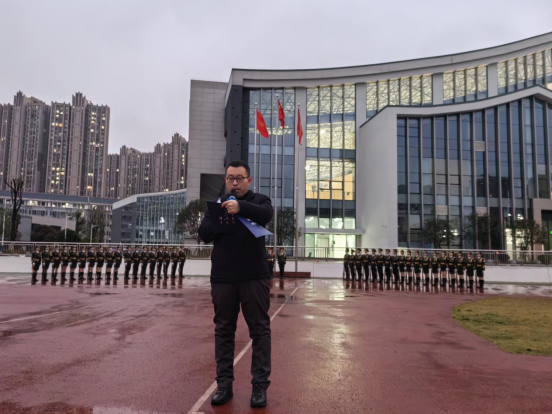 早上7点整,升旗仪式正式开始。英姿飒爽的国旗护卫队迈着铿锵有力的步伐,护送鲜艳的五星红旗入场。五星红旗伴随着庄严的国歌声冉冉升起,全体师生面向国旗,齐唱国歌肃立致敬。